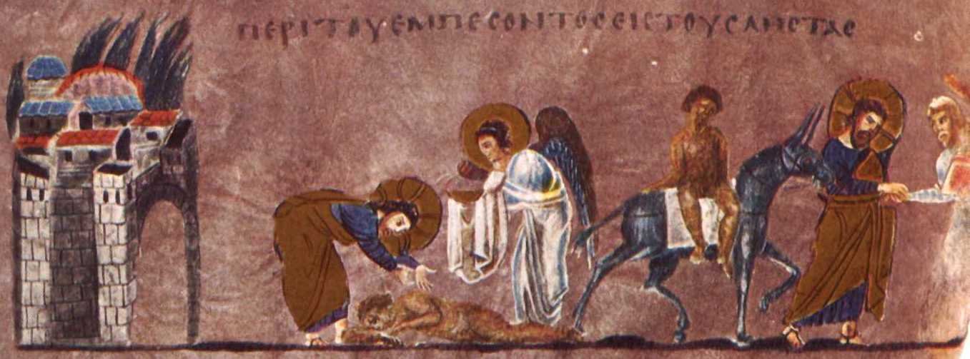 Who will come to the aid of thi bleeding man on the Jericho Road? Who is this Good Samaritan? And who is his neighbor? His Neighbor, stripped and bleeding and left to die, is, of course, God Incarnate, "the Son of Man [who has] come .... to give His life as a ransom for many" (Mt 20:28, Mk 10:45). But anyone who has offered himself to be a ransom might himself be ransomed. This was well known if only by virtue of the story of Damon and Pythias teaches — a story known and reverenced throughout the first-century world and cited by St. Luke as the banner under which Christians sail (recall this passage from the Book of Acts).