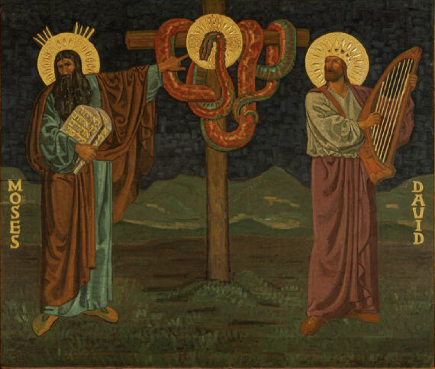 For God had punished the Israelites who had been murmuring against Moses. And caused asps to be present in that wilderness. And they bit the Israelites. And many were dying. But held aloft his bronze serpent cross, which healed them and protected then against future snake bites.